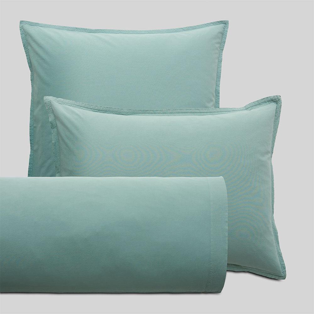 Taie coton lavé Vert d'eau / 50X70 déclassé - LN058