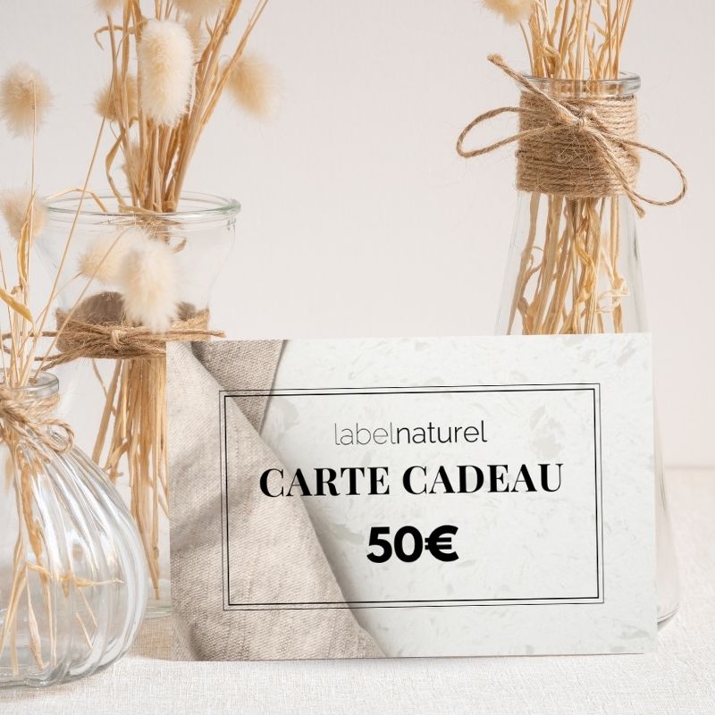 Envie de faire plaisir sans vous tromper ? Offrez la liberté de choisir avec la carte cadeau digitale Label Naturel ! Valable 1 an sur l’ensemble de notre boutique en ligne, elle est envoyée instantanément par email dès la validation de votre commande. Un geste à la fois simple, élégant et responsable. Offrez le plaisir de choisir parmi nos essentiels en fibres naturelles.