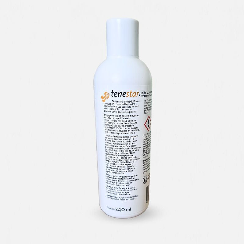 La lessive Tenestar® est utilisée par de grandes maisons dans l'univers du Luxe et de la Mode. Son principe est de nettoyer en profondeur, mais en douceur en protégeant la soie. Ne contenant aucun additif chimique agressif, Tenestar® est entièrement biodégradable et ménage la soie lors du lavage, empêchant l'étoffe de devenir rêche.