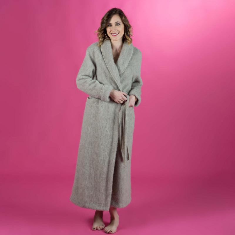 Notre robe de chambre croisée au col châle et aux poignets tricot est un must en termes d'élégance et de confort. Confectionnée dans le sud-ouest avec de la laine des Pyrénées, elle vous maintient au chaud vous enveloppant dans une matière si douce qu'il vous sera difficile de vous en passer.