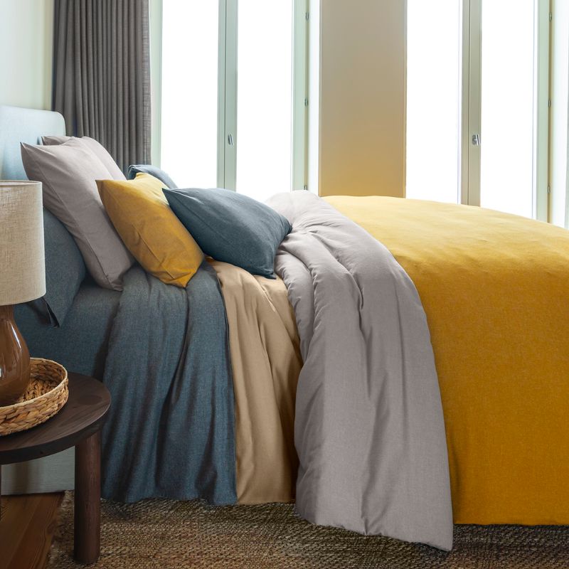 Notre linge de lit en flanelle de coton chambray est doux, respirant, chaud et durable. Il résiste à l'usure quotidienne et reste confortable année après année.