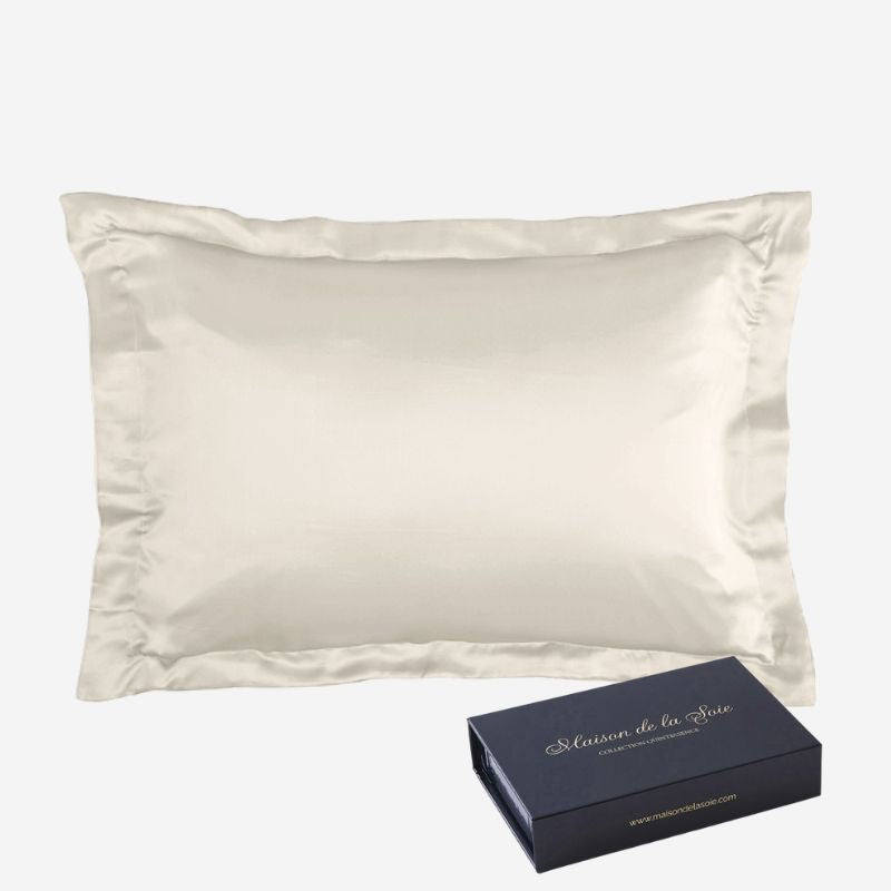 Taie d'oreiller en soie de mûrier avec volant 25 mommes